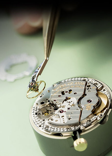 Cu un mecanism mecanic cu întoarcere automată, caracterizat printr-un finisaj de înaltă calitate, autentic pentru brand și fabricat de acesta, el oferă o fiabilitate atemporală. Numai puntea bariletului include cinci finisaje: gravură, Côtes de Geneve, teșire, lustruire și granulare circulară.