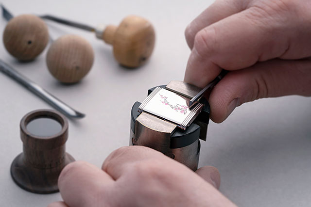 Toți cei care dețin un Reverso din oțel sau aur - fie că este nou sau pre-owned - pot solicita o gravură pentru partea din spate a carcasei. Și, printr-un instrument online, Jaeger-LeCoultre a făcut procesul extrem de simplu, indiferent de locul în care se poate afla un proprietar. Online, opțiunile standard includ o selecție de inițiale sau date, într-o varietate de stiluri de caractere, mesaje text simple sau semne zodiacale, toate cu opțiunea de a adăuga un lac colorat pentru a evidenția designul. Modelele personalizate - bazate pe o fotografie, o schiță sau chiar începând doar cu o idee - pot fi comandate și online. Posibilitățile sunt la fel de infinite ca abilitățile proiectanților și gravorilor din Jaeger-LeCoultre's Manufacture.