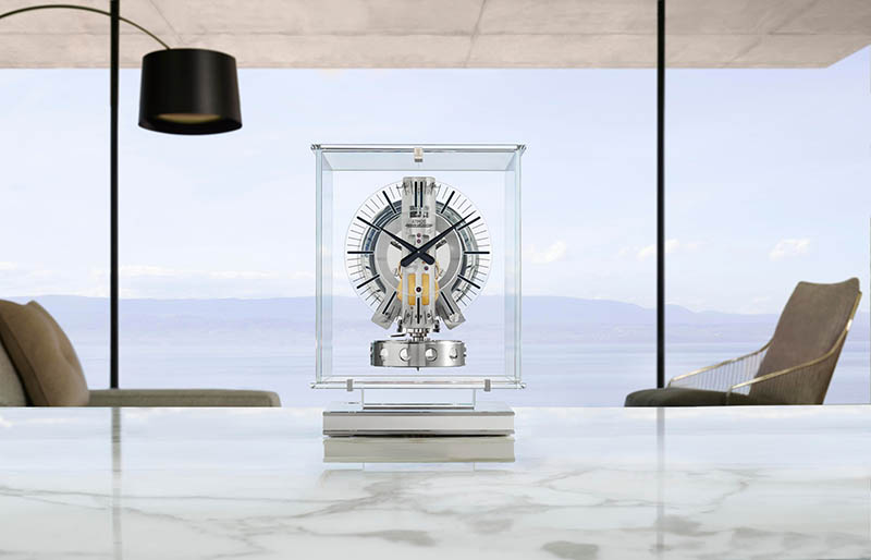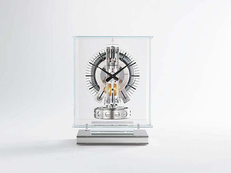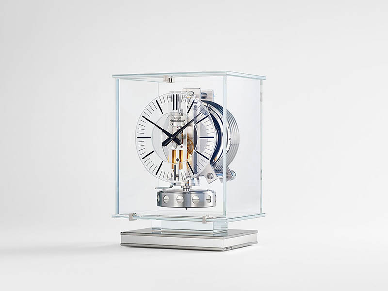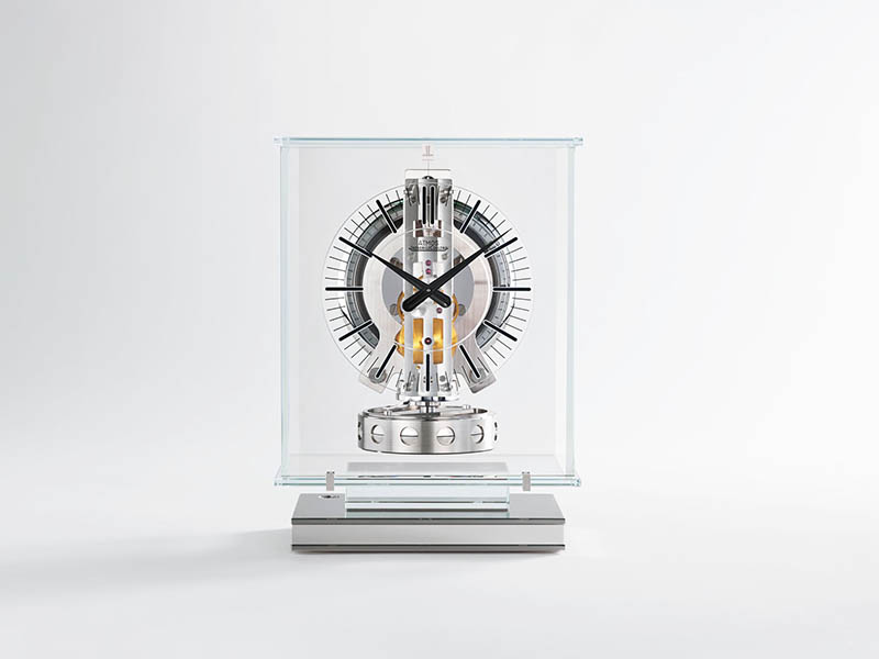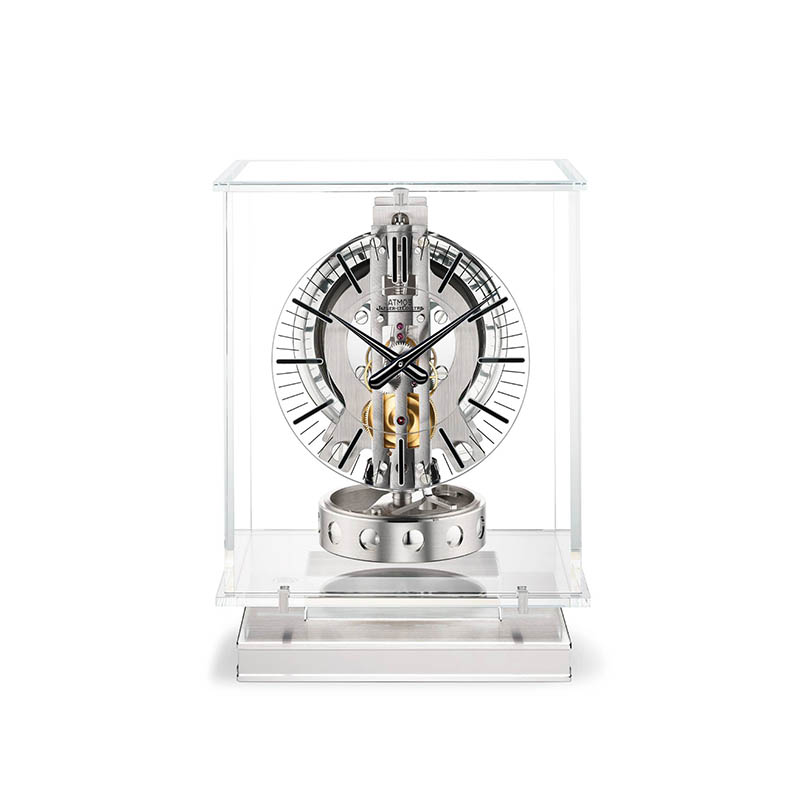 Noua creație Atmos Transparente dezvăluie, în interiorul carcasei sale cristaline din sticlă tratată antireflex, o estetică surprinzător de sobră. Din orice unghi, privirea este captivată, iar echilibrul perfect. Cadranul, inspirat de stilul Art Deco, este completat de indici orari și arătătoare cu o estetică minimalistă, baza fiind satinată și placată cu rodiu.