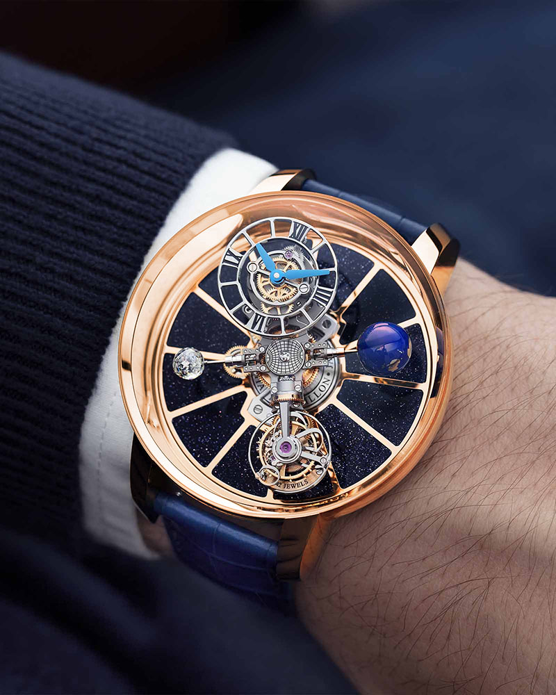 Cu toții ne amintim planșa sistemului solar de la geografie, sau micile planetarii văzute în muzee, sau oriunde altundeva, care ne fascinau prin ingeniozitatea cu care ne arătau poziția și mișcarea planetelor în jurul Soarelui. Sigur, toate acestea sunt acum simulate digital în diferite aplicații, însă tot acum poți admira un planetarium în miniatură într-un ceas pe încheietura ta.