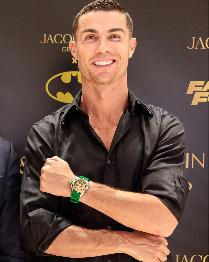 Cristiano Ronaldo este un partener de lungă durată și apropiat al lui Jacob & Co. Ronaldo și fondatorul și președintele Jacob Arabo au stabilit o relație puternică bazată pe încredere și respect în ultimii douăzeci de ani. Jacob Arabo l-a cunoscut pe Cristiano Ronaldo când fotbalistul născut în Madeira era o stea în devenire promițătoare și prietenia lor nu a eșuat niciodată de atunci.