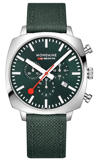 Grand Cushion, cu carcasa sa mai mare de 41 mm, are un mecanism de cronograf care permite purtătorului să urmărească data și să măsoare timpul scurs cu precizie, rămânând fidel designului cadranului Mondaine, ușor de citit. Fiecare ceas Grand Cushion este ambalat ca un set, vine cu două curele cu eliberare rapidă, personalizate, pentru versatilitate în stil și pentru a se potrivi cu orice ținută sau stare de spirit.