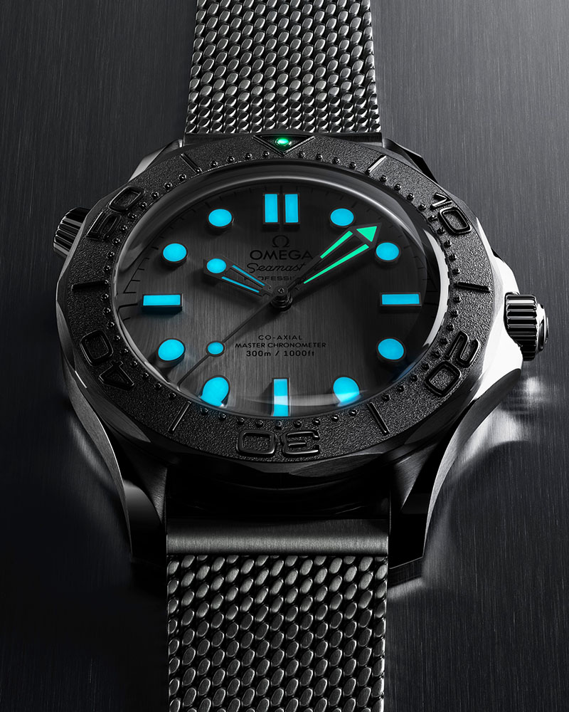 Noua serie Diver 300M se îndepărtează de stilul ceramic familiar din ultimii ani, și, în schimb, se inspiră din Seamaster Diver 300M 007 Edition, care a fost purtat în filmul cu James Bond, No Time To Die.