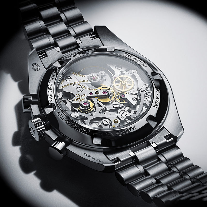Spre deliciul fanilor Moonwatch, luneta din aluminiu anodizat negru a primit celebrul "Dot over Ninety" pe scara tahimetrică, în timp ce, în interior, ceasul este acţionat de Calibrul Co-Axial Master Chronometer 3861 - cea mai actuală versiune a legendarului Calibru 321 în care au avut încredere astronauţii de pe Lună.