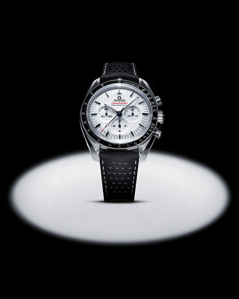 De ce alb? Principala sursă de inspiraţie pentru acest nou look este reprezentată de culorile alb şi negru ale costumelor spaţiale ale astronauţilor - în special cele folosite în timpul activităţilor extravehiculare (EVA), care sunt ieşirile în spaţiu. O legătură autentică până la urmă, deoarece Speedmaster Moonwatch a fost purtat oficial de astronauţii NASA încă din 1965 şi este cunoscut ca fiind primul ceas purtat pe Lună. În plus, detaliile roşii apar şi pe costume începând cu Apollo 13, în 1970, pentru a semnifica rangul comandantului.