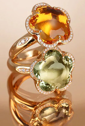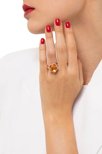 Bon Ton Divine, unde tonurile calde de portocaliu și galben se amestecă în culoarea citrină rară. Este o colecție care evocă o femeie cu un stil de viață elegant, sofisticat și rafinat. Floarea Bon Ton Divine emană atenție la detalii, care este simbolul tuturor bijuteriilor Pasquale Bruni. Simbolul sacru OM și mantraua "Eu sunt lumină, dau lumină" sunt gravate pe spate.