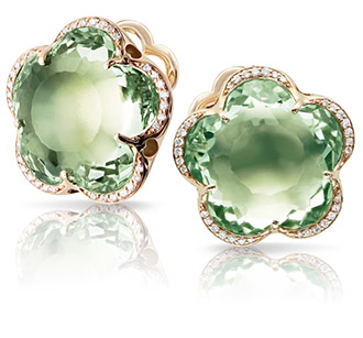 Cercei tip știft Bon Ton Dolce Vita din aur roz de 18k cu prasiolit și diamante