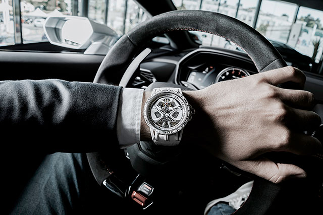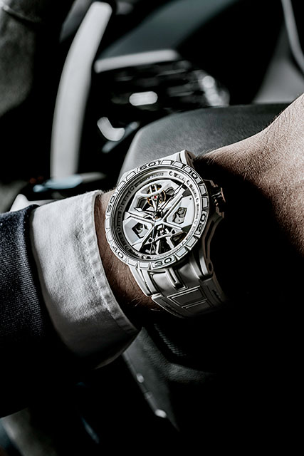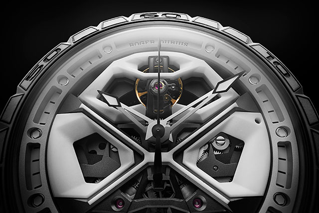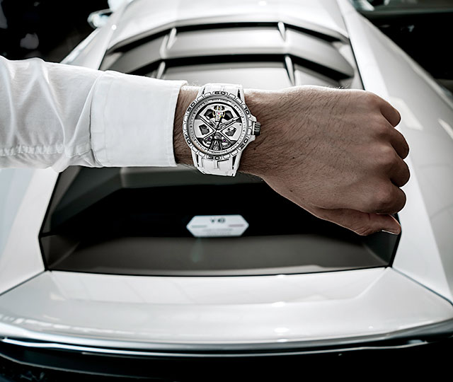 Alimentat de un calibru automat RD630, Excalibur Spider Huracán, cu diametrul de 45 mm, transmite același amestec entuziasmant de performanță și ușurință ca și omonimul său automobilistic. Luând indicii vizuale puternice de care se bazează Lamborghini Huracán, ceasul este impregnat de coduri de design de curse auto. Cu un motiv de tip fagure făcut celebru de supermașină, tabloul de bord hexagonal al lui Lamborghini Huracán se reflectă în ceas, prin același epicentru paralel cu forma calibrului. În plus, bariletele duble și un balansier înclinat la 12° reprezintă semnătura de mecanism asociată cu Lamborghini Squadra Corse.