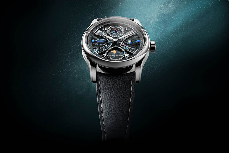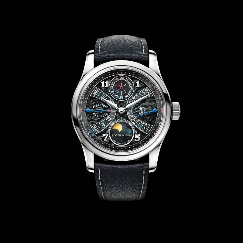 Este cadrul ideal pentru a pune în valoare complicația favorită a lui Roger Dubuis: calendarul perpetuu cu afișaj biretrograd.