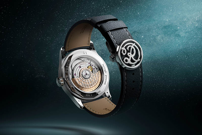 Un strat dedicat fazelor Lunii completează ansamblul, cu bază din aventurin albastru și două Luni ușor bombate din aur galben de 18K, singurele elemente din acest material, în referință directă la primele calendare perpetue ale manufacturii.