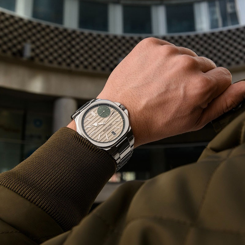 "Ripples Dune date" prezintă cadranul rafinat cu ondulațiile caracteristice tridimensionale care denumesc colecția.