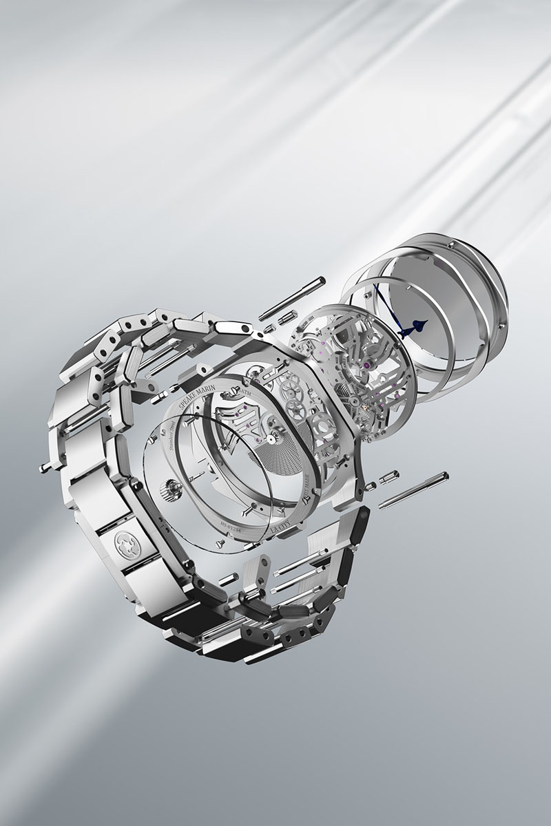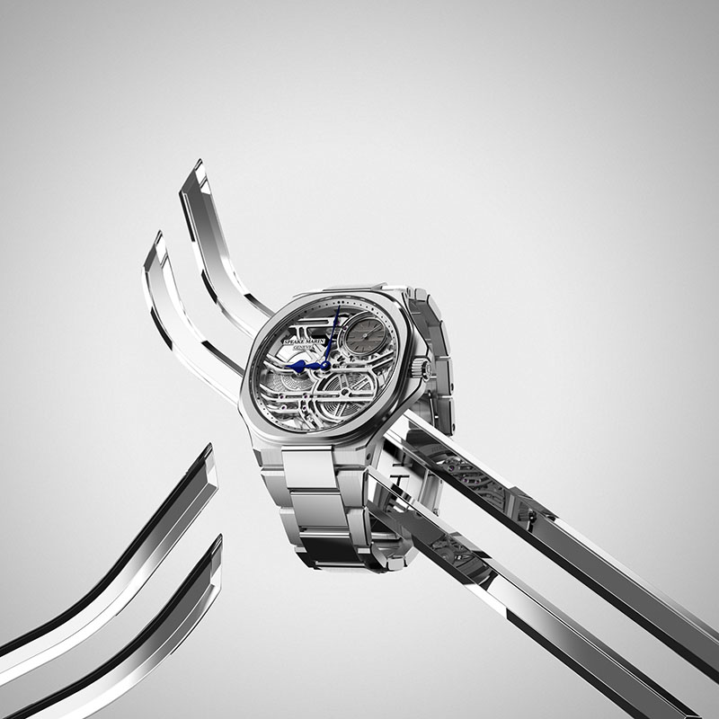 Cadranul "cu vedere" vă invită să vă cufundați în lumea micro mecanicii. Puteți vedea nu numai arătătoarele in mișcare, ci și mecanismul care le conduce funcțiile. În plus, construcția sa esențială permite luminii să pătrundă, îmbunătățind măiestria sa meticuloasă și transformându-i aspectul printr-un joc de reflexii.