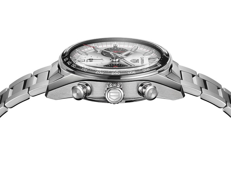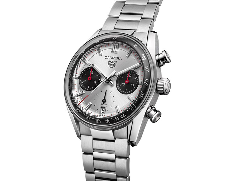 În concordanță cu tema de bază a lizibilității, arătătorul central al cronografului este placat cu rodiu și are vârful lăcuit în roșu, detaliu care atrage atenția când cronograful funcționează. Atracția cronografului Carrera „Panda” se extinde la brățara de otel care, pentru prima dată la colecția reproiectată Carrera, se împletește armonios cu designul Glassbox și evidențiază configurația “Panda” a cadranului. Acest amestec armonios omagial de vintage, eleganță contemporană și noutate, invită purtătorii să aprecieze măiestria și spiritul inovator pentru care TAG Heuer este renumit.
