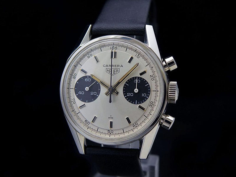 Modelul Heuer Carrera din prima generație avea un mecanism de cronograf Valjoux mecanic manual și un cadran argintiu sau negru într-o varietate de configurații, uneori cu adăugarea unei scări tahimetrice în jurul zone periferice a cadranului. La sfârșitul anilor 1960, o a doua serie a fost adăugată, atât cu cadran argintiu și subcadrane negre, cât și invers, cu cadran negru și subcadrane argintii - serie cunoscută ca „Panda” și „Reverse Panda”. In 2023, după șase decenii, TAG Heuer a ales să aducă un omagiu unuia dintre cele mai populare modele, Carrera referința 2447 SN, prin lansarea unui ceas TAG Heuer Carrera Chronograph 60th Anniversary.