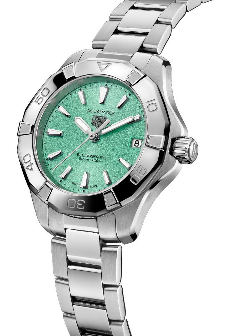 Îndrăzneț, activ și în rezonanță cu natura, conceptul TAG Heuer Aquaracer s-a bazat întotdeauna pe o fuziune perfectă cu elementele, menținând în același timp o eleganță înnăscută. În 2022, TAG Heuer a pornit în călătoria tehnologiei Solargraph cu un ceas de 40 mm cu lunetă din carbon, care a luat cu asalt industria ceasurilor, deoarece este alimentat de un mecanism solar, o premieră pentru brand. Anul 2023 a asistat la o versiune din titan, extinzând familia Solargraph. Acum, în 2024 Solargraph este setat să redefinească eleganța și funcționalitatea prin introducerea dimensiunii de 34 mm, o completare perfectă și proaspătă a colecției Aquaracer, tranzitând către o oferta de ceasuri mai mici și mai versatile. Dar, la fel ca predecesorii săi, noile modele de 34 mm vin cu caracteristicile cheie ale colecției Aquaracer: o lunetă rotativă unidirecțională, o coroană înșurubată, rezistență la apă până la 200 de metri, marcaje luminoase, geam din cristal safir și o închizătoare dublă cu siguranță.