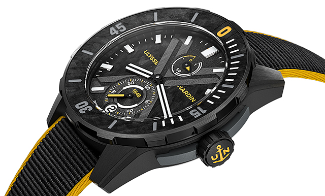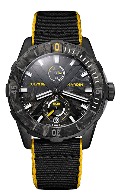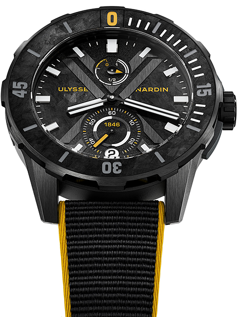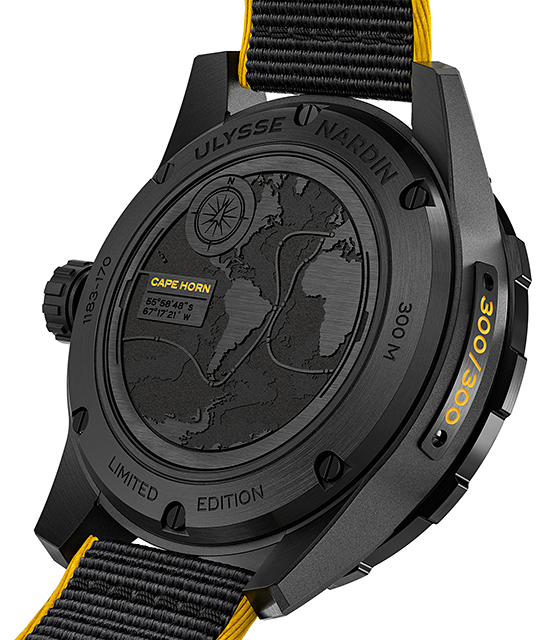 Cu cusăturile sale portocalii de șofran ars pe curea, pentru a aminti traseul condimentelor sau călătoria chinuitoare în jurul Țării de Foc, luneta de carbon și X-ul imediat recunoscut pe față, Ulysse Nardin Diver X CAPE HORN - ceasul oficial al lui Vendée Globe - va fi lansat doar într-o ediție limitată de 300 de piese. Mecanismul UN-118 garantează precizia în orice emisferă, în orice moment al zilei sau al nopții. Cureaua din țesătură este realizată din tehnologie de ultimă oră: reglabil, dar ușor, acest material se împerechează magnific cu fața ultra-ușoară din carbon. Un X negru satinat este imprimat cu îndrăzneală 6-12 în relief de-a latul feței.