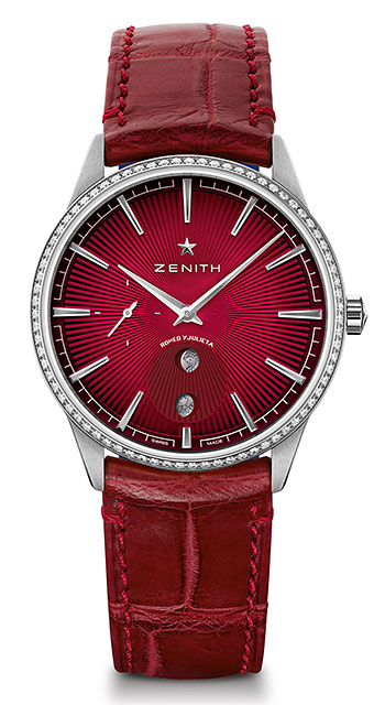 În loc de o deschidere tradițională în formă de arc pe cadran pentru a afișa faza de lună, Zenith a optat pentru două deschideri rotunde, pentru a păstra modelul de raze de soare al cadranului intact.