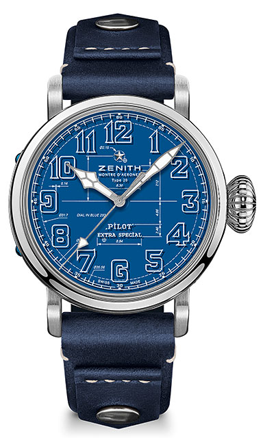 Limitat la 250 de piese, modelul Pilot Type 20 Blueprint rămâne fidel moștenirii omniprezentelor ceasuri Pilot de la Zenith. Carcasa de oțel supradimensionată, finisată cu un amestec de suprafețe lustruite și periate satinate, are coroana supradimensionată în formă de "ceapă", care permitea ajustarea timpului chiar și în timp ce erau purtate mănuși de zbor. Partea laterală a carcasei are o placă înșurubată care poartă numărul unic de ediție limitată al ceasului.