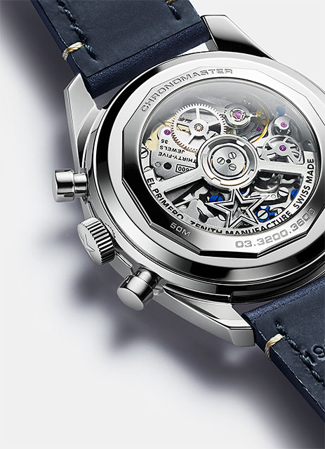 Rezultatul a 50 de ani de îmbunătățire treptată și o adevărată stăpânire a mecanismului cronografului automat de înaltă frecvență, Chronomaster Original este echipat cu cea mai recentă versiune a calibrului El Primero, denumit El Primero 3600. Cu frecvența sa înaltă de 5 Hz (36'000 VpH), mecanismul este capabil să ofere cu precizie o adevărată indicație de 1/10 din secundă. Autonomia sa a fost, de asemenea, eficientizată, cu o rezervă de mers extinsă de 60 de ore. Vizibilă prin spatele din safir, noua arhitectură prezintă un design mai elegant și mai deschis, dezvăluind o roată pe coloană albastră și un rotor deschis, marcat cu steaua cu cinci colțuri Zenith.