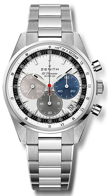 Key points: Automatic El Primero column-wheel chronograph able to measure and display 1/10th of a second. Increased power reserve of 60 hours. Date indication at 4:30. Stop-second mechanism