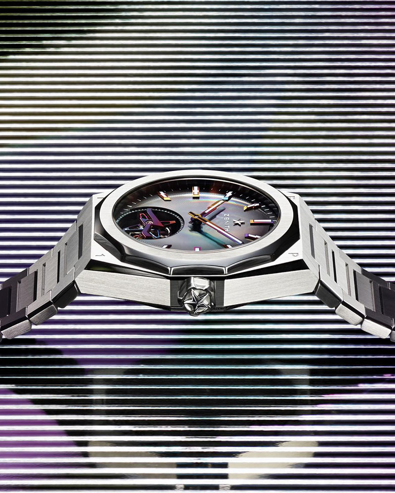 Arta contemporană și orologeria de ultimă oră se îmbină perfect. După ce au lucrat la fațada istorică a Manufacturii cu un vizual special conceput în 2020, ZENITH și artistul din Valencia, Felipe Pantone, au continuat să dezvăluie numeroase proiecte de ceasuri: o serie în ediție limitată a DEFY 21 care s-a epuizat instantaneu în 2021, o interpretare unică a DEFY 21 Double Tourbillon într-o carcasă de safir care a stabilit un record pentru ZENITH la licitația caritabilă OnlyWatch 2021 și un model foarte așteptat in 2022, DEFY Extreme Felipe Pantone. De data aceasta, pânza artistului este DEFY Skyline Tourbillon, marcând prima sa reimaginare a unui model DEFY Skyline. Rezultatul este atât extrem de compact, cât și versatil, dar plin de detalii complicate și originale care au ajuns să definească colaborarea continuă dintre ZENITH și Felipe Pantone.