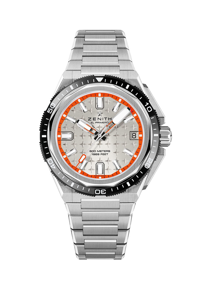 Cadranul prezintă un model geometric cu stele gravate cu patru colțuri, un detaliu caracteristic colecției contemporane DEFY, care a apărut pentru prima dată pe modelele DEFY pe spatele carcasei și pe coroană în 1969. Special pentru acest nou DEFY Extreme Diver, cadranul este realizat într-o nuanță alb-argintie, cu finisaj în raze de soare care pornește din dreptul simbolului stelei ZENITH de la ora 12. Data de la ora 3 este în aceeași nuanță a cadranului.